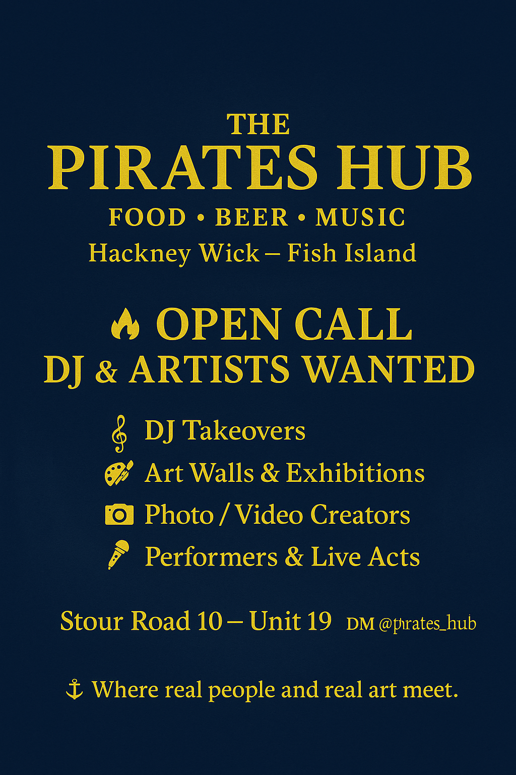 Want to bring your crew, your sound or your idea to The Pirates Hub?